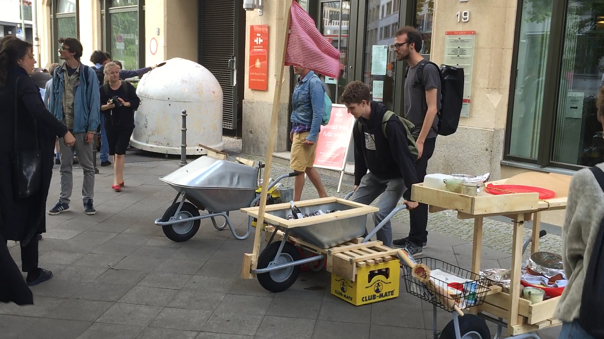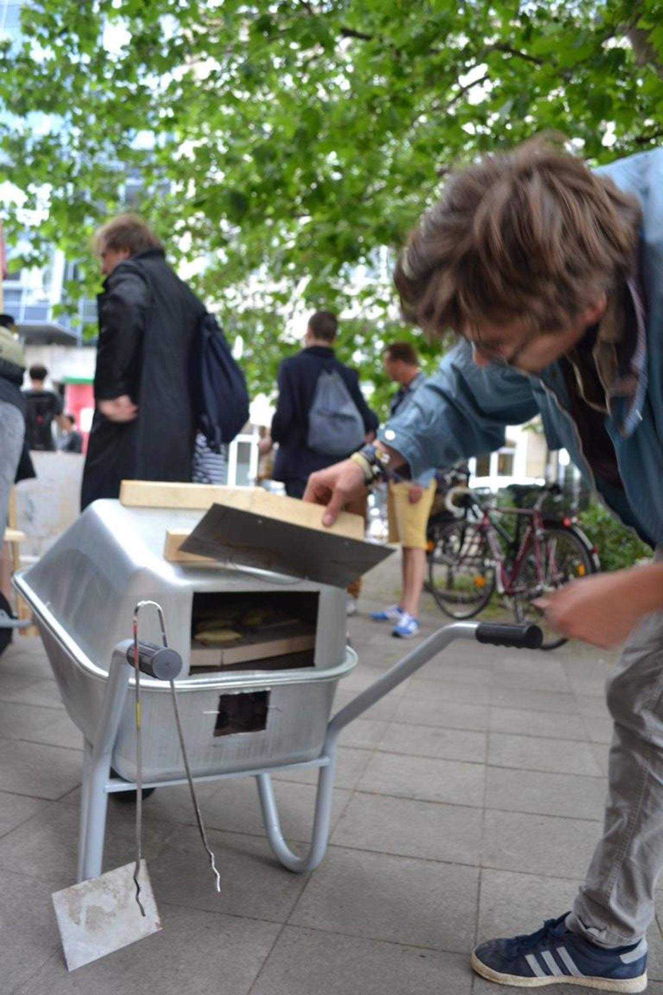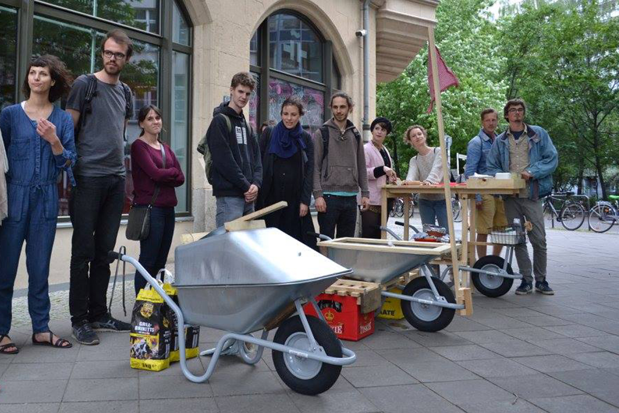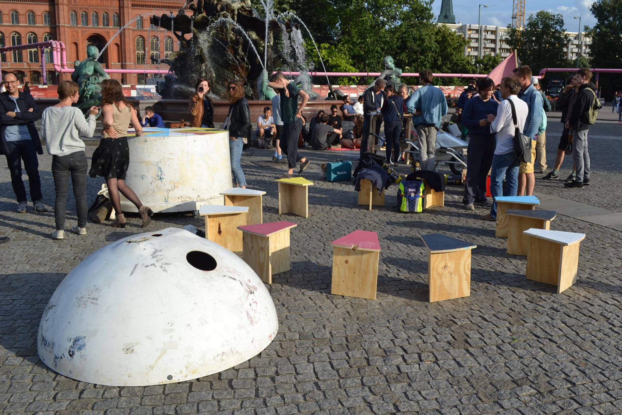Anlässlich der 160 Jahre Deutsch-uruguayischen Freundschaft versammelten sich Architekten, Künstler und Designer aus Montevideo und Berlin zu einem eintägigen Workshop, um mobile Koch- und Tischkonstruktionen zu entwerfen. Gegessen, getrunken und geredet wurde noch am selben Abend. Das Instituto Cervantes bat dafür als engagierter Partner seinen Außenbereich. Für ein mobiles sobremesa, über Sprach- und Kontinentalgrenzen hinweg, zu kulturellen Banden und Freundschaften.