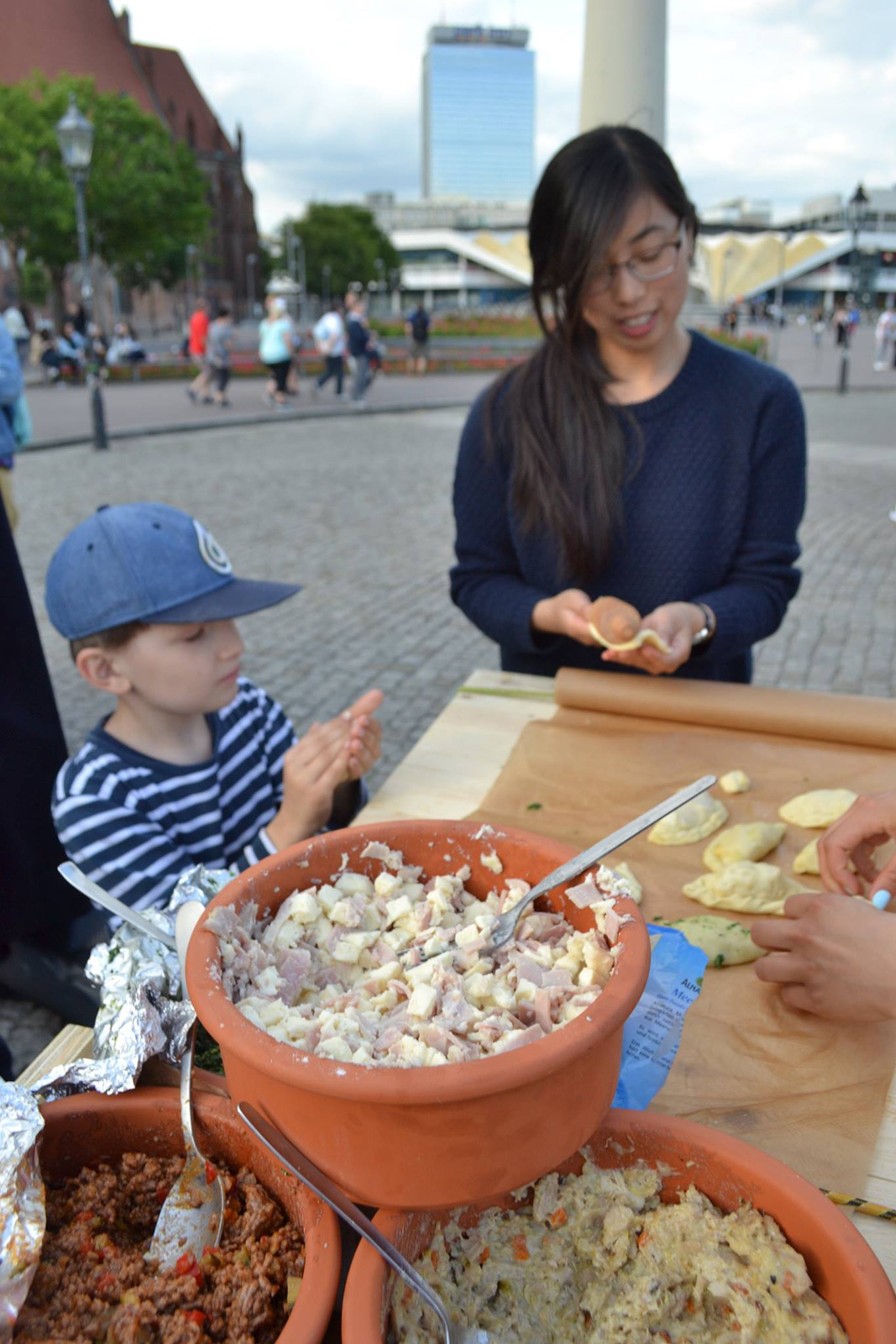 Die Aktion startete vor dem Institut Cervantes, und bewegte sich zum Neptunbrunnen vor dem Roten Rathaus, begleitet von einem mobilen Ofen, einem Bartisch und einer Empanada-Küche…