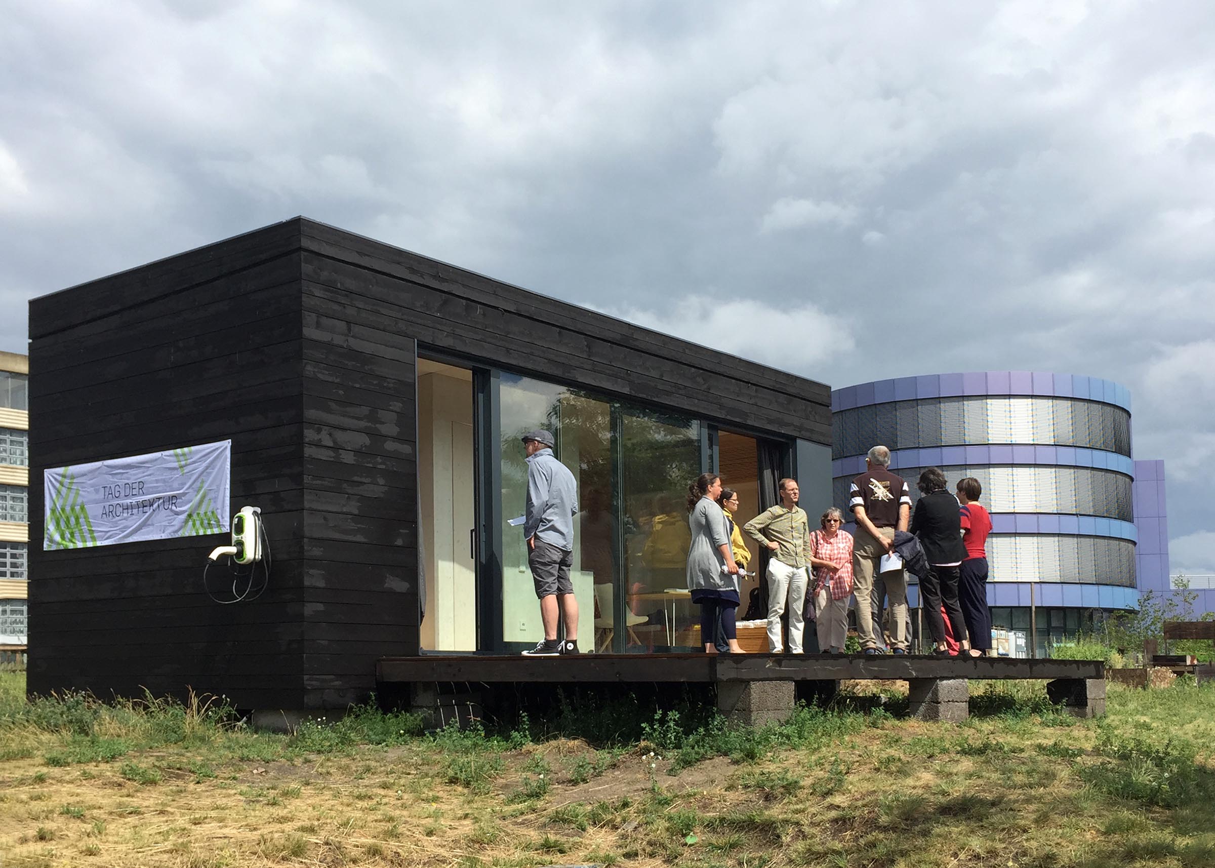 Am Sonntag den 25.06 gab es bei wechselhaften Wetter eine Besichtigung des Minimalhauses am neuen Standort im Campus der HTW Berlin am Spreeufer. Wir haben uns über das große Interesse sehr gefreut.